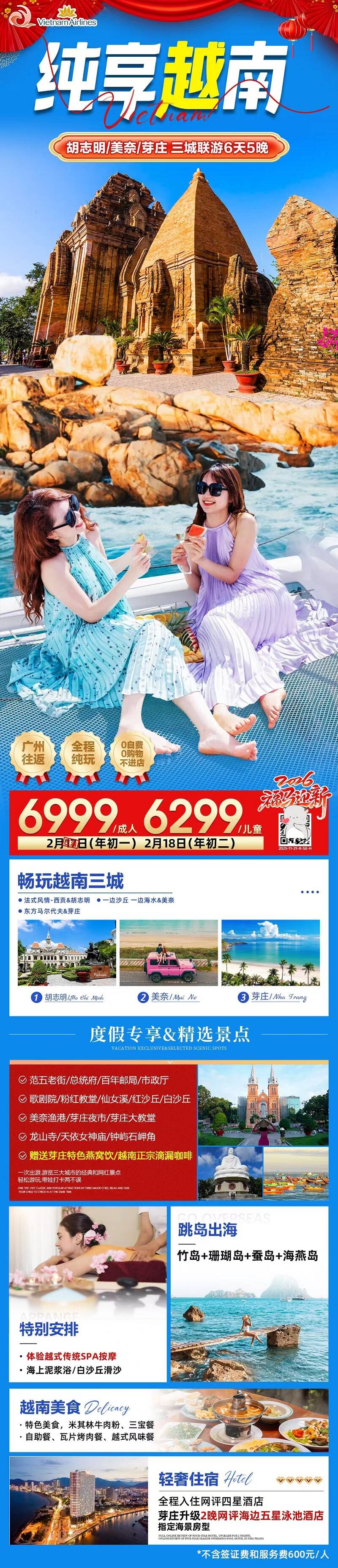春节纯享越南🇻🇳三城联游(胡志明+美奈+芽庄)6天5晚
