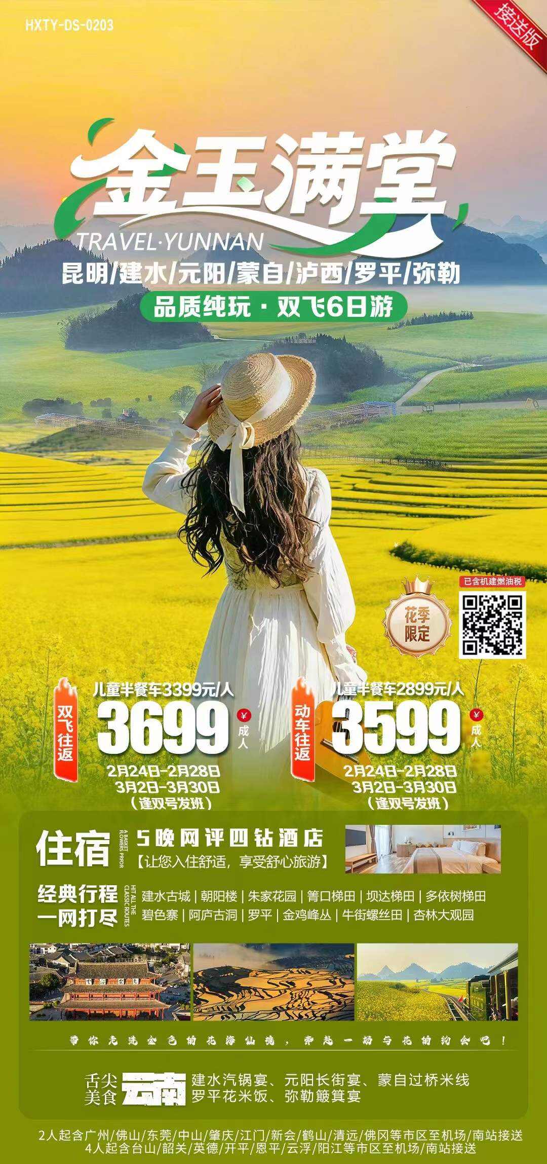 金玉满堂TRAVEL.YUNNAN昆明/建水/元阳/蒙自/泸西/罗平/弥勒品质纯玩·双飞6日游
