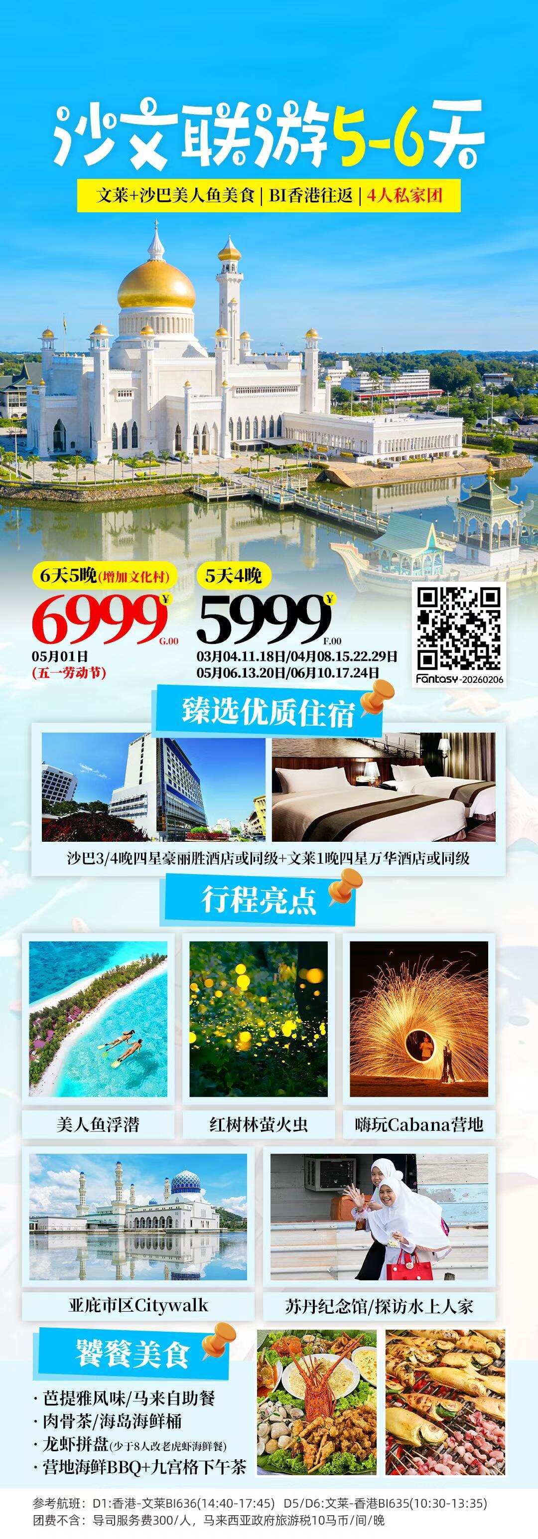沙巴文莱五天纯玩3-6月5999起,4人成行